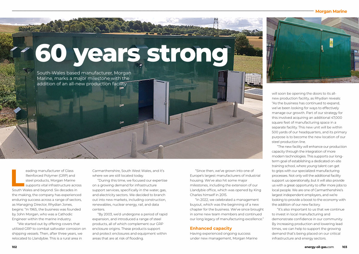 Leading manufacturer of Glass Reinforced Polymer( GRP) and steel products, Morgan Marine supports vital infrastructure across South Wales and beyond. Six decades in the making, the company has experienced enduring success across a range of sectors, as Managing Director, Rhydian Jones, begins:“ In 1965, the business was founded by John Morgan, who was a Cathodic Engineer within the marine industry.