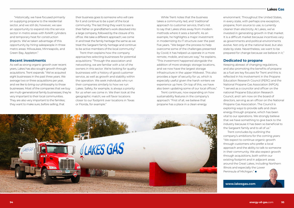 “ Historically, we have focused primarily on supplying propane to the residential sector, and we still do; however, we saw an opportunity to expand into the service sector in metro areas with forklift cylinders and temporary heat for construction projects. We’ ve taken advantage of this opportunity by hiring salespeople in three metro areas: Milwaukee, Minneapolis, and Green Bay, Appleton.”