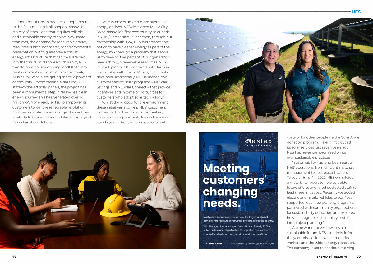 “ Sustainability has long been part of NES’ operations, from efficient materials management to fleet electrification,” Teresa affirms.“ In 2022, NES completed a materiality report to help us guide future efforts and hired dedicated staff to lead these initiatives. Recently we added electric and hybrid vehicles to our fleet, supported local tree-planting programs, partnered with community organizations for sustainability education and explored how to integrate sustainability metrics into project planning.”