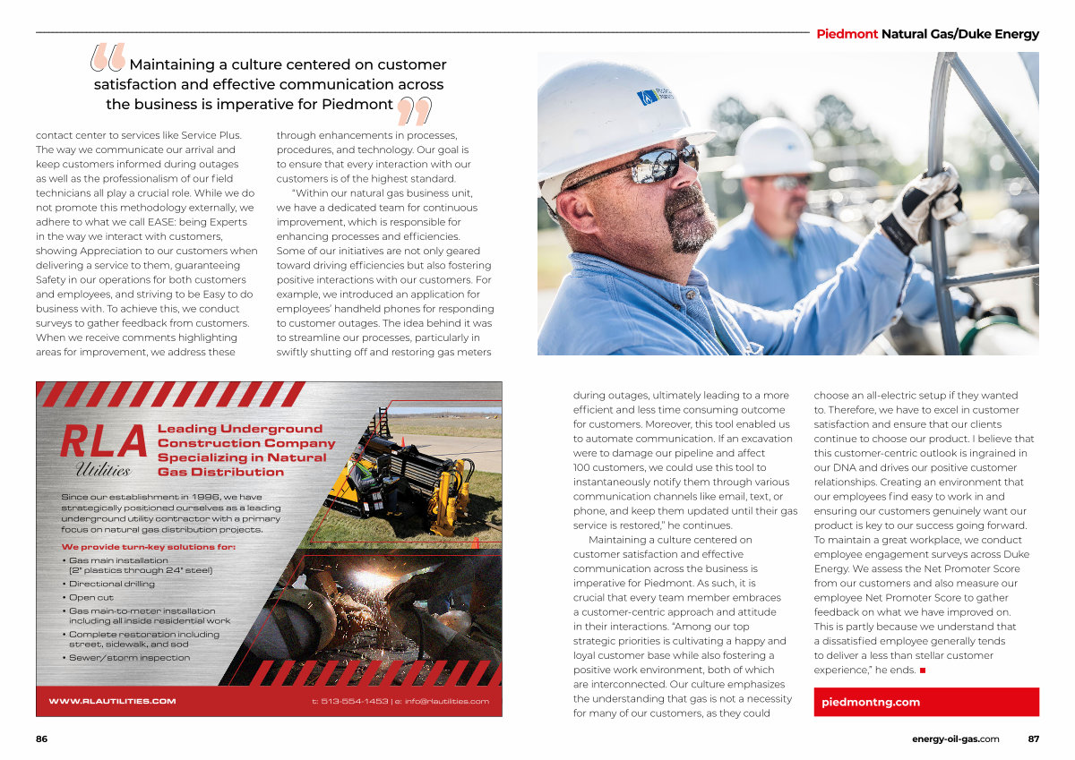 Maintaining a culture centered on customer satisfaction and effective communication across the business is imperative for Piedmont