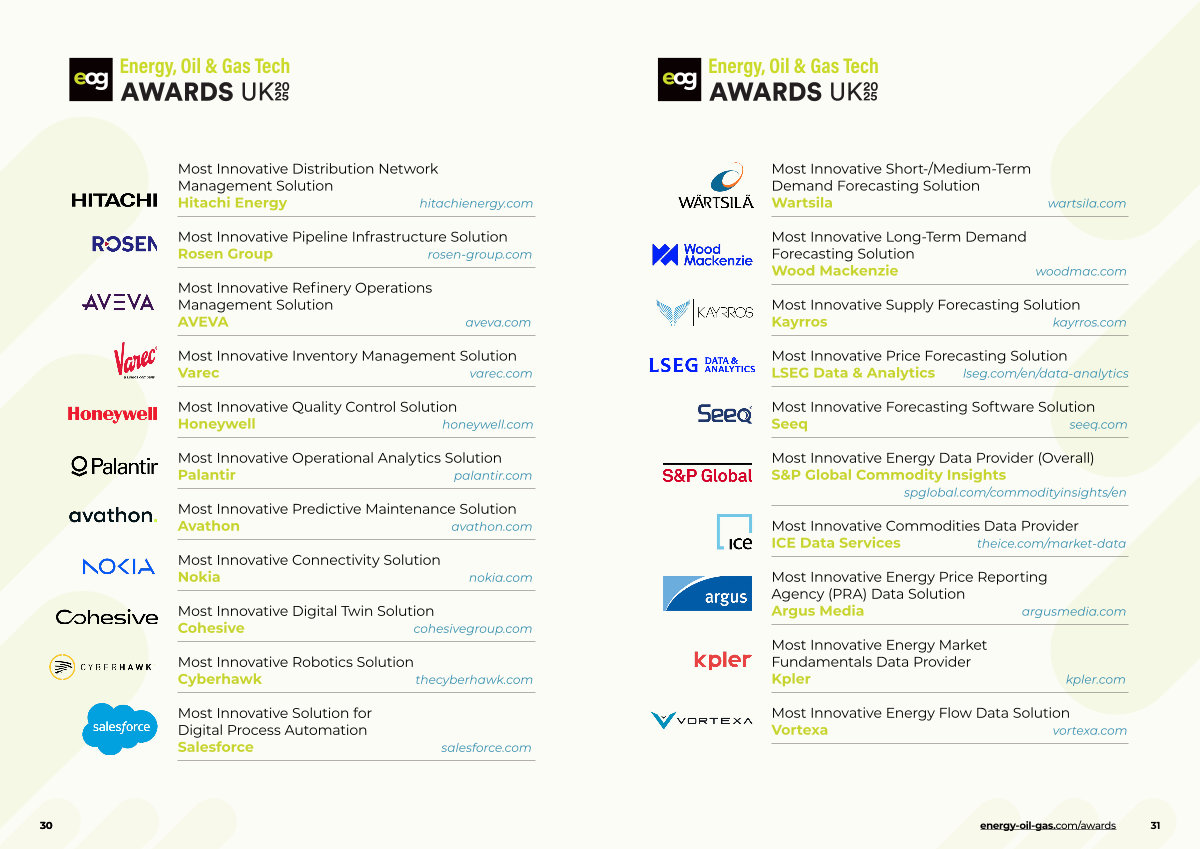 Most Innovative Energy Data Provider( Overall) S & P Global Commodity Insights spglobal. com / commodityinsights / en