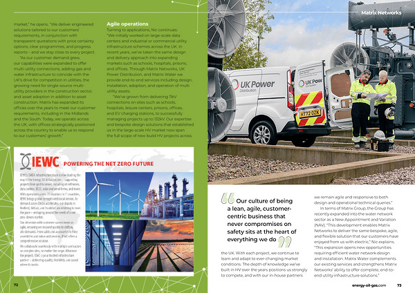 Turning to applications, Nic continues:“ We initially worked on large-scale data centers and industrial or commercial utility infrastructure schemes across the UK. In recent years, we’ ve taken the same design and delivery approach into expanding markets such as schools, hospitals, prisons, and offices. Through Matrix Networks, UK Power Distribution, and Matrix Water we provide end-to-end services including design, installation, adoption, and operation of multi utility assets.