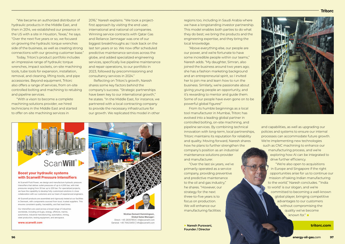 Reflecting on Tritorc’ s growth, Naresh shares some key factors behind the company’ s success.“ Strategic partnerships have been key to our international growth,” he states.“ In the Middle East, for instance, we partnered with a local contracting company to provide the necessary infrastructure for our growth. We replicated this model in other