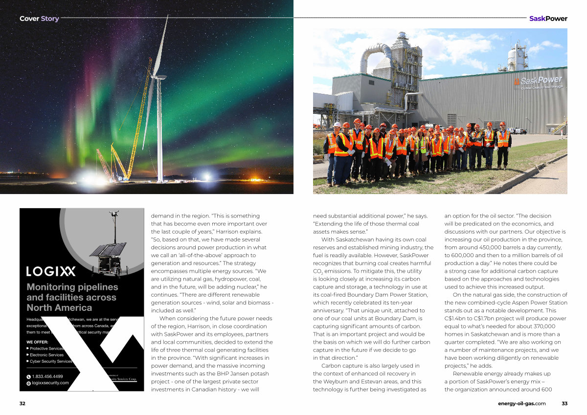 On the natural gas side, the construction of the new combined-cycle Aspen Power Station stands out as a notable development. This C $ 1.4bn to C $ 1.7bn project will produce power equal to what’ s needed for about 370,000 homes in Saskatchewan and is more than a quarter completed.“ We are also working on a number of maintenance projects, and we have been working diligently on renewable projects,” he adds.