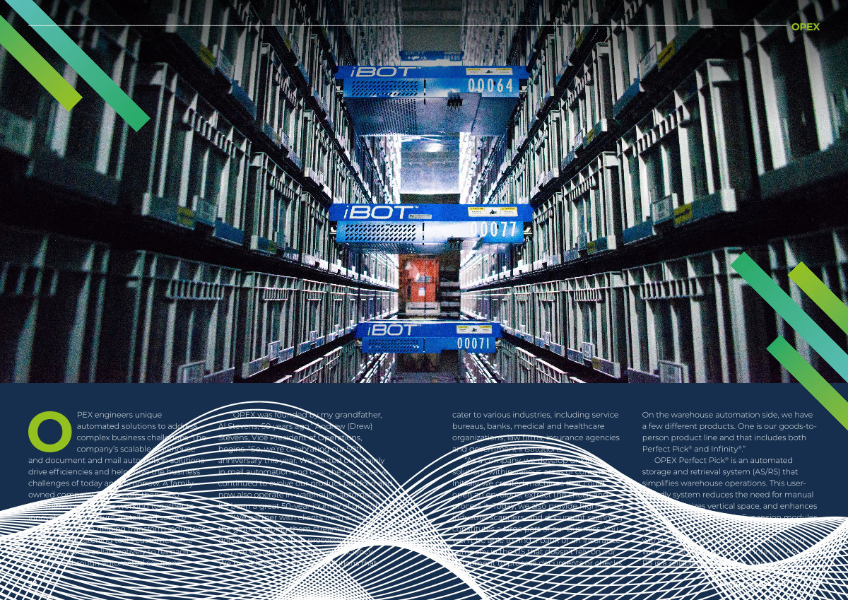 OPEX engineers unique automated solutions to address complex business challenges. The company’ s scalable warehouse and document and mail automation solutions drive efficiencies and help solve the business challenges of today and tomorrow. A familyowned company, it has more than 1600 committed employees working together to innovate, manufacture, install and service products that are helping transform industries every day. By listening to its customers, the company works collaboratively to reimagine the future through automated solutions.