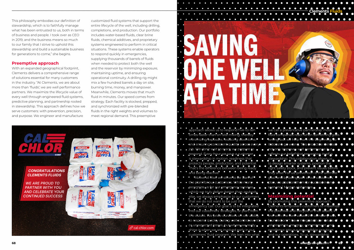 With an expanded geographical footprint, Clements delivers a comprehensive range of solutions essential for many customers in the industry.“ At Clements, we are about more than‘ fluids’; we are well performance partners. We maximize the lifecycle value of every well through engineered fluid systems, predictive planning, and partnership rooted in stewardship. This approach defines how we serve customers: with prevention, precision, and purpose. We engineer and manufacture customized fluid systems that support the entire lifecycle of the well, including drilling, completions, and production. Our portfolio includes water-based fluids, clear brine fluids, chemical additives, and proprietary systems engineered to perform in critical situations. These systems enable operators to respond quickly in emergencies, supplying thousands of barrels of fluids when needed to protect both the well and the reservoir by minimizing exposure, maintaining uptime, and ensuring operational continuity. A drilling rig might mix a few hundred barrels a day on site, burning time, money, and manpower. Meanwhile, Clements moves that much fluid in minutes. Our speed comes from strategy. Each facility is stocked, prepped, and synchronized with pre-blended fluids in the right weights and volumes to meet regional demand. This preemptive