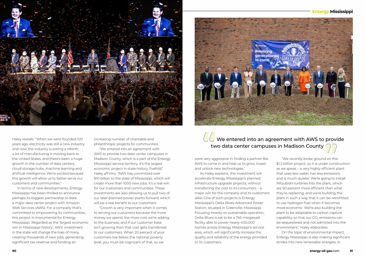 As Haley explains, this investment will accelerate Entergy Mississippi’ s planned infrastructure upgrade projects, without transferring the cost to its consumers – a major win for the company and its customers alike. One of such projects is Entergy Mississippi’ s Delta Blues Advanced Power Station, situated in Greenville, Mississippi. Focusing heavily on sustainable operation, Delta Blues is set to be a 745-megawatt facility able to power nearly 400,000 homes across Entergy Mississippi’ s service area, which will significantly increase the quality and reliability of the energy provided to its customers.