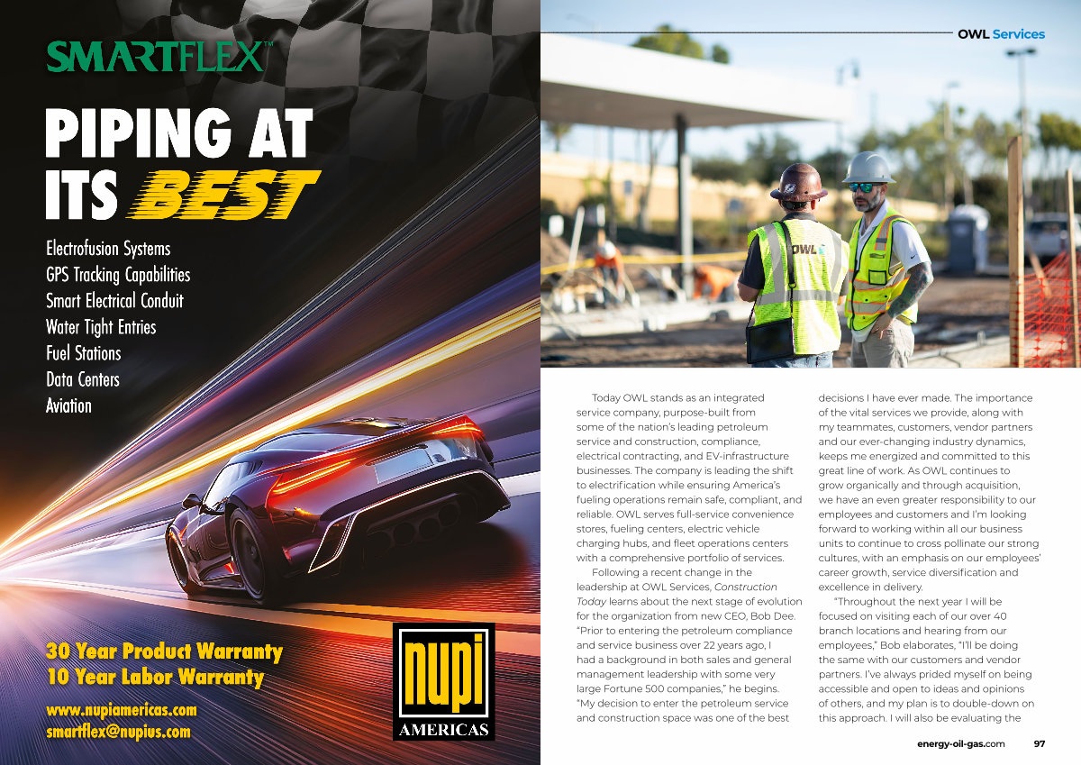 Following a recent change in the leadership at OWL Services, Construction Today learns about the next stage of evolution for the organization from new CEO, Bob Dee.“ Prior to entering the petroleum compliance and service business over 22 years ago, I had a background in both sales and general management leadership with some very large Fortune 500 companies,” he begins.“ My decision to enter the petroleum service and construction space was one of the best decisions I have ever made. The importance of the vital services we provide, along with my teammates, customers, vendor partners and our ever-changing industry dynamics, keeps me energized and committed to this great line of work. As OWL continues to grow organically and through acquisition, we have an even greater responsibility to our employees and customers and I’ m looking forward to working within all our business units to continue to cross pollinate our strong cultures, with an emphasis on our employees’ career growth, service diversification and excellence in delivery.