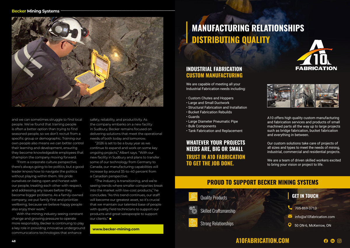 safety, reliability, and productivity. As the company embarks on a new facility in Sudbury, Becker remains focused on delivering solutions that meet the operational needs of both today and tomorrow.