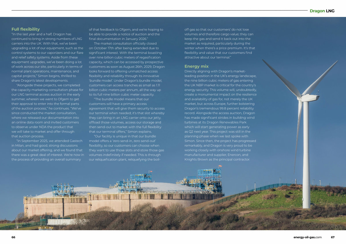 “ Alongside these projects, we completed the capacity marketing consultation phase for our LNG terminal access auction in the early summer, wherein we went to Ofgem to get their approval to enter into the formal parts of the auction process,” he continues.“ We’ ve since conducted the market consultation, where we released our documentation into an online data room and invited customers to observe under NDA the product that we will take to market and offer through that auction process.